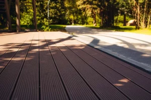 На лицевой стороне есть продольные бороздки — несложно догадаться, что они служат для отвода воды. Эти канавки делают палубу менее скользкой во время дождливой погоды. Конечно, это очень важно, но такие же свойства нужны и для настила, который в сезон может быть залит дождем, засыпан снегом и т. д. А вот напольное покрытие не всегда имеет бороздки – сейчас это не является строгим требованием. Однако многие домовладельцы предпочитают брать именно такой материал: внешне он тоже ассоциируется с оформлением уютной террасы.