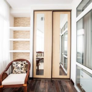 В большинстве типовых застроек балкон довольно маленький. Это следует учитывать при выборе шкафа туда. В противном случае он может просто не поместиться. Габариты шкафа не должны превышать это значение. А в случае установки встык по высоте и ширине необходимо их примерное совпадение, с небольшим отклонением в меньшую сторону. Только так получится подобрать шкаф, который поместится внутрь балкона.