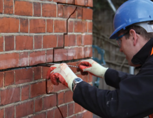 - Свыше двенадцати мм – при условии ликвидации причин их образования ремонт выполняется по аналогичной с предыдущим способом технологии. Но после заделки можно дополнительно усилить самостоятельно изготовленными стягивающими элементам. Это особенно актуально, когда треснул облицовочный кирпич над или под окном, дверным проемом или в углах дома.