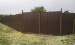 Вам остается всего лишь заключить договор на выполнение услуги с компанией. Все работы будут проведены с применением передовой техники и современных материалов. Для придания презентабельного вида разбавить сплошные полотна из профнастила можно столбами, отделанные камнем, декоративным кирпичом.